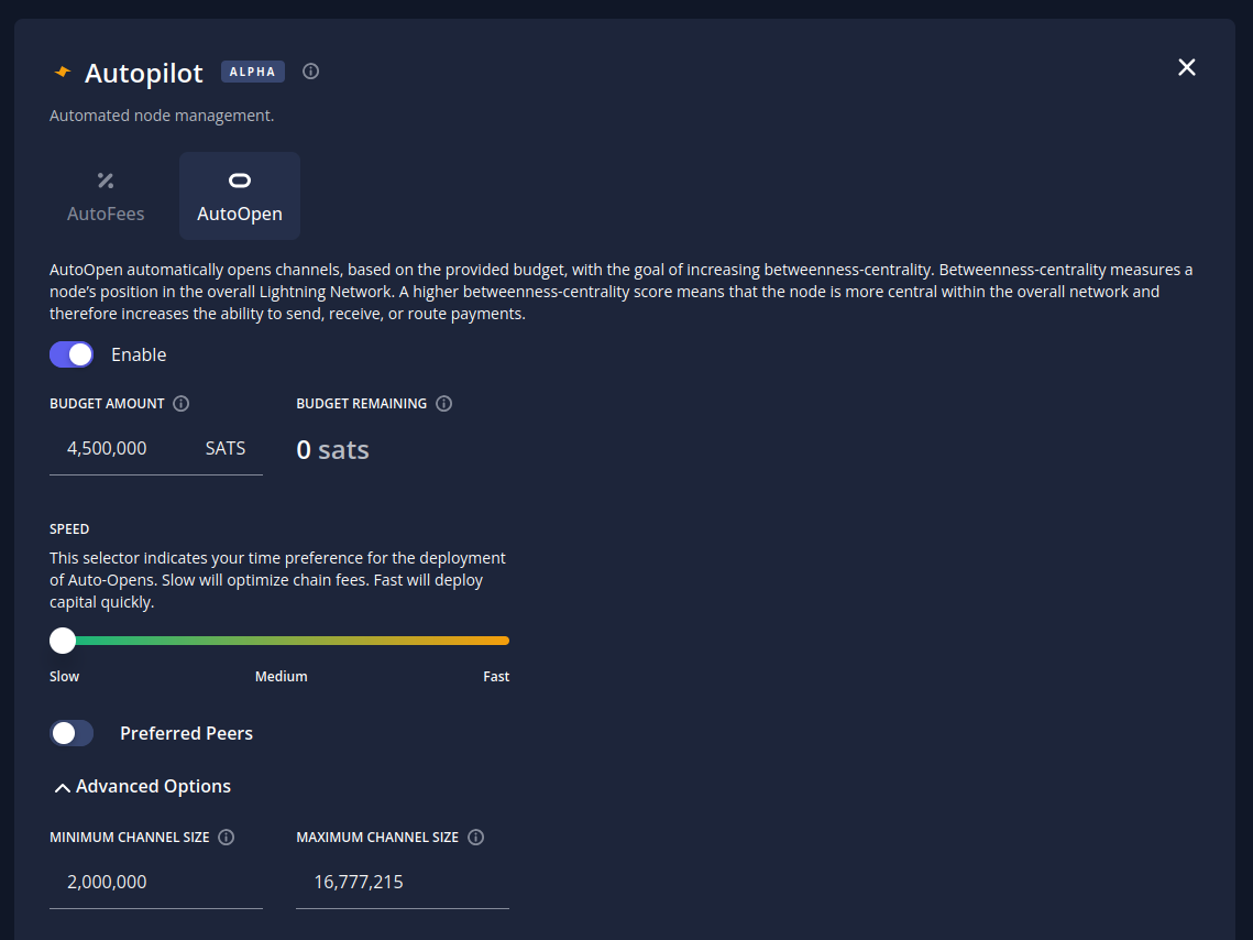 <figure><img src="https://2545062540-files.gitbook.io/~/files/v0/b/gitbook-x-prod.appspot.com/o/spaces%2F-MIzyiDsFtJBYVyhr1nT%2Fuploads%2Fgit-blob-78b493c6cccd7fb4d6918393c17643257d5681bb%2FScreenshot%20from%202024-11-15%2011-52-35.png?alt=media" alt=""><figcaption><p>Configure your Autoopen budget in the Lightning Terminal interface</p></figcaption></figure>