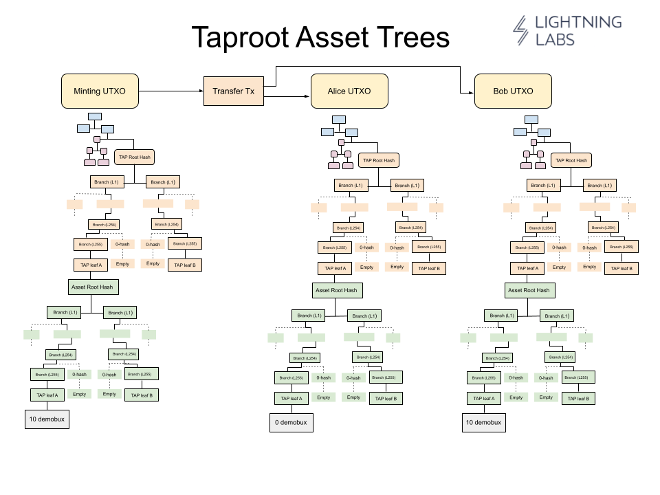 <figure><img src="https://2545062540-files.gitbook.io/~/files/v0/b/gitbook-x-prod.appspot.com/o/spaces%2F-MIzyiDsFtJBYVyhr1nT%2Fuploads%2Fgit-blob-98ac9ef667257a489086bf9e5ea344078ef48b6a%2FTAP%20Trees.png?alt=media" alt=""><figcaption><p>Overview over the various tree structures used in Taproot Assets</p></figcaption></figure>